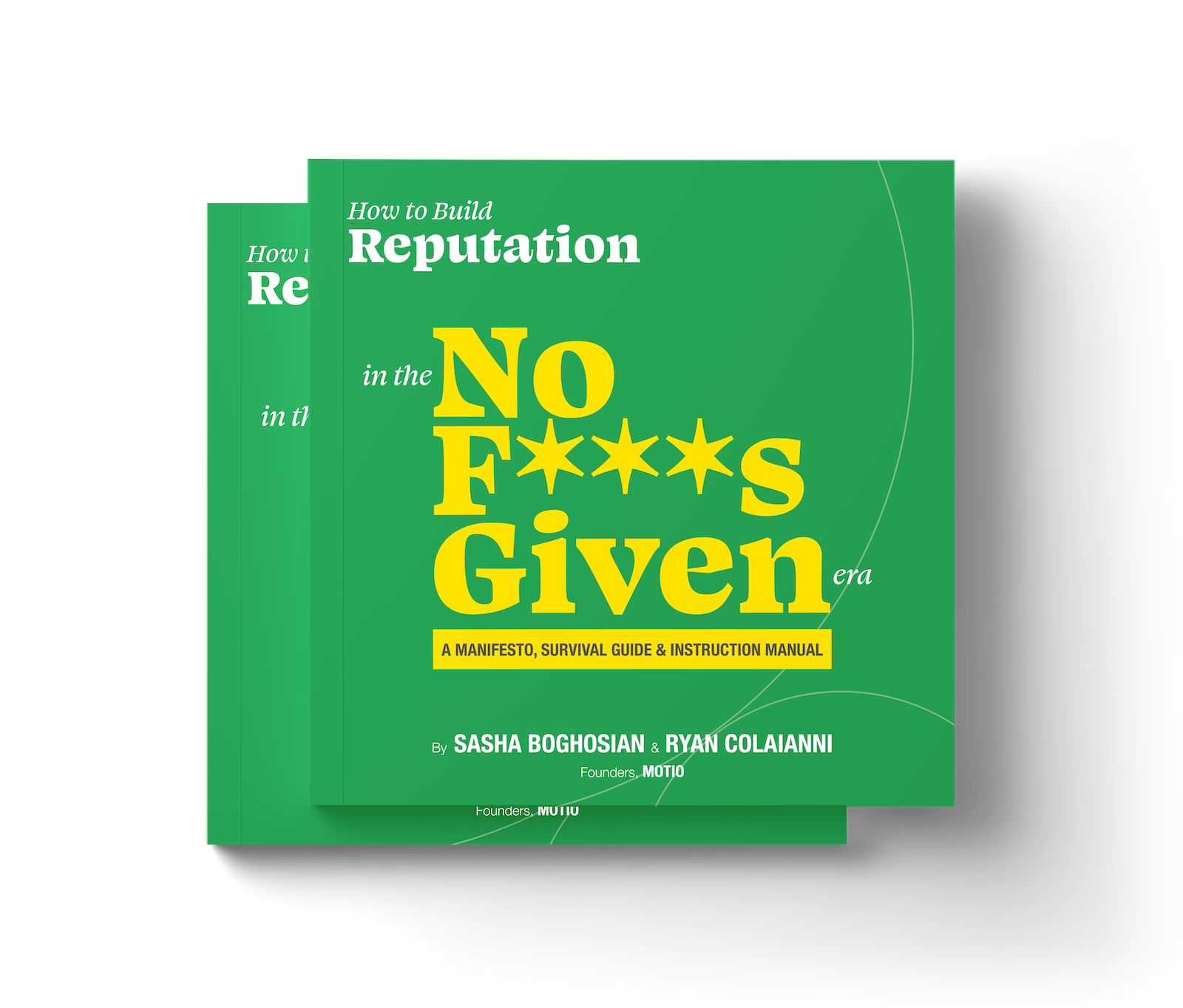 Our book, How to Build Reputation in the No F***s Given Era, articulates the dramatic change we have experienced as a society. And it proposes a new philosophy brands must use to navigate it, along with a new set of tools they can use to build reputation in unprecedented times.